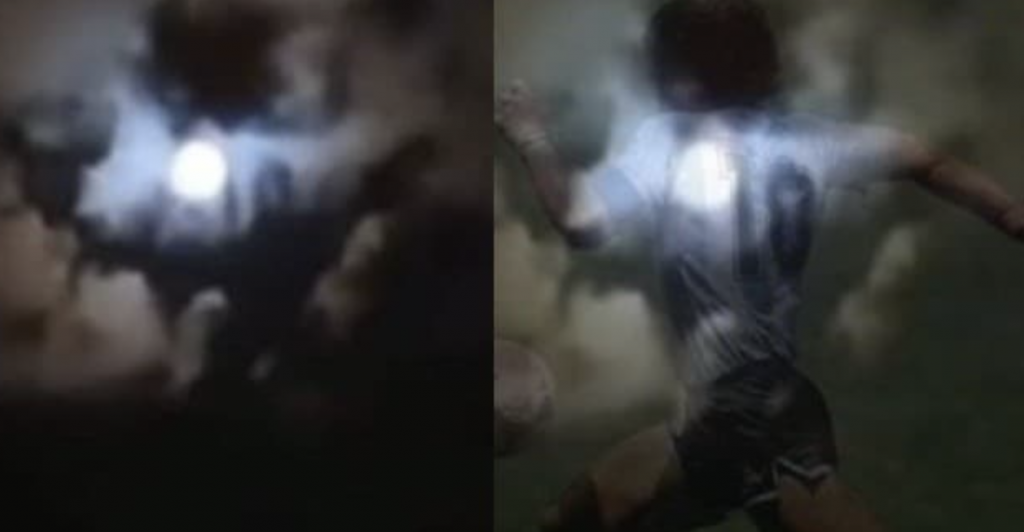 L’immagine rievoca il celebre scatto del campione con la maglia numero 10 dell’Argentina. Il video è stato pubblicato da Olé su Twitter, noto quotidiano sportivo argentino fondato a Buenos Aires nel 1996.