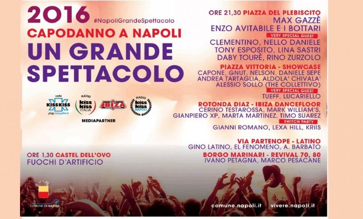 E’ stato diramato, dal sindaco Luigi de Magistris, il programma completo del Capodanno 2016 a Napoli. Il primo cittadino lo ha fatto lanciando anche l’hashtag che caratterizzerà l’evento: #NapoliGrandeSpettacolo.