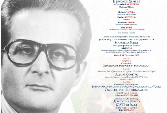 Nel corso della serata sarà inoltre presentato ufficialmente il bando della Borsa di Studio intitolata alla memoria di Marcello Torre, che sarà rivolta ai laureandi in Giurisprudenza dell’Università degli Studi di Salerno. Ad illustrare i contenuti del bado, il Prof. Luigi Kalb, Ordinario di Procedura Penale presso il Dipartimento di Scienze Giuridiche – Scuola di Giurisprudenza dell’Ateneo salernitano.