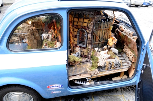 Ha attirato turisti e cittadini la Fiat 500 della Polizia Stradale con all’interno un presepe, in esposizione a Napoli tra piazza del Plebiscito e piazza Trieste e Trento. Sul lato posteriore dell’auto e su parte del sedile anteriore della vettura è stato un sistemato un presepe con 30 pastori realizzati in ceramica e raffiguranti i personaggi tipici. Il presepe rappresenta i vicoletti e le balconate tipiche della vecchia Caltagirone.