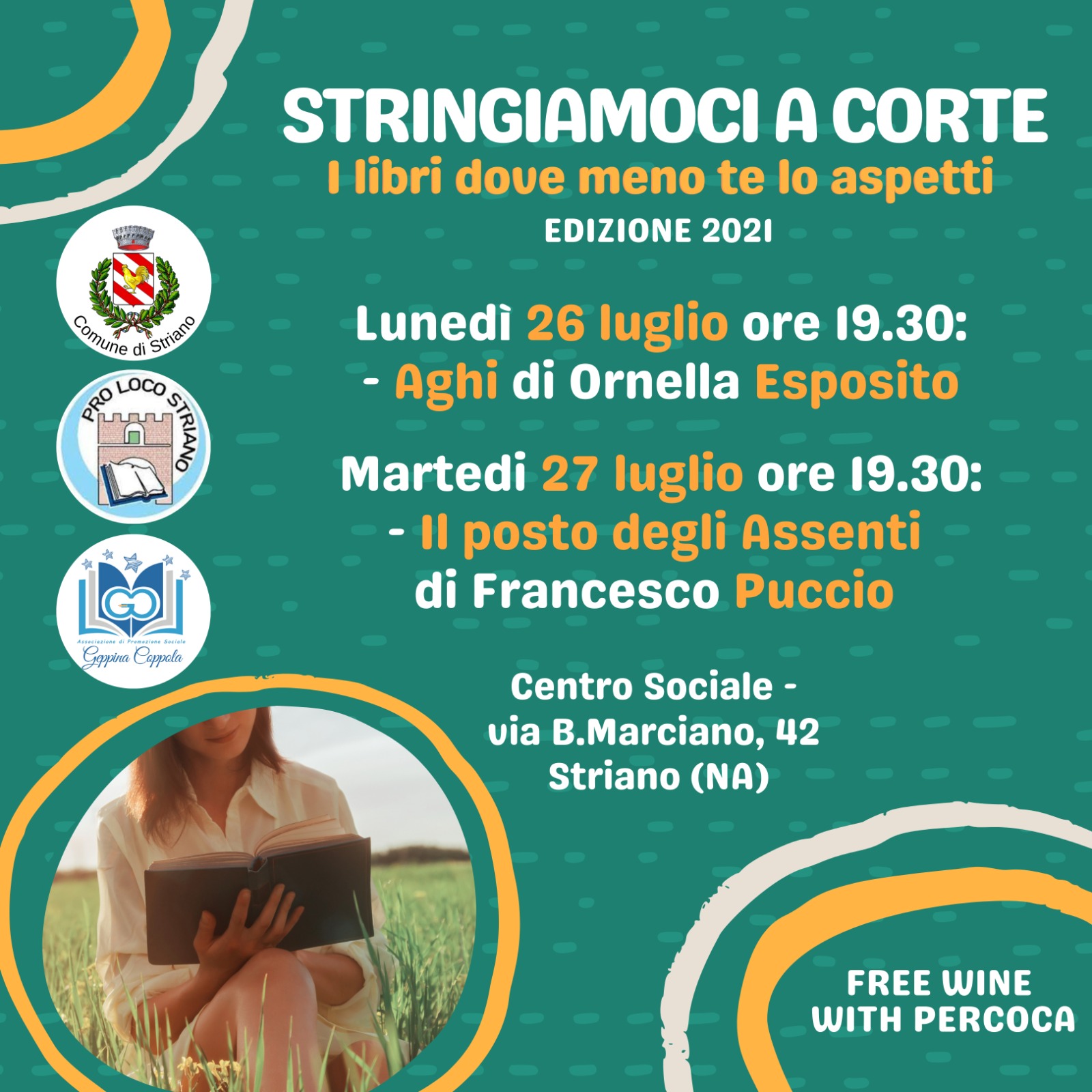 Torna a Striano “Stringiamoci a corte”, la rassegna letteraria organizzata, quest’anno, dalla Pro Loco e dall’associazione di promozione sociale “Geppina Coppola”, con il patrocinio dell’amministrazione comunale di Striano.
