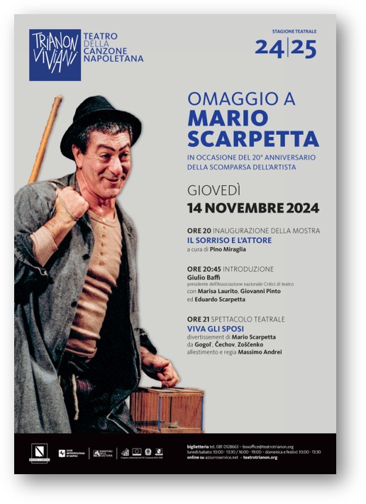 Il Trianon Viviani sceglie il giorno del proprio compleanno per annunciare una serata di memoria e celebrazione tutta dedicata a Mario Scarpetta, che si terrà giovedì 14 novembre.