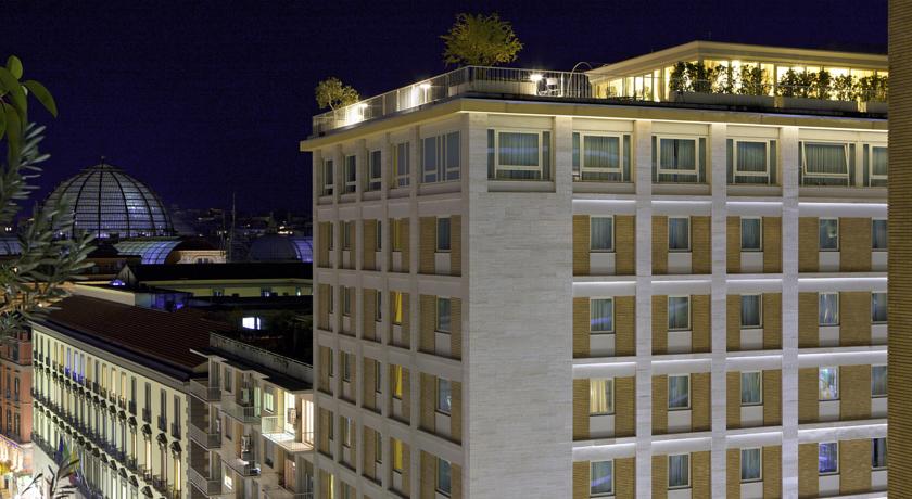 L’albero di Natale nella hall dell’hotel Mediterraneo a Napoli