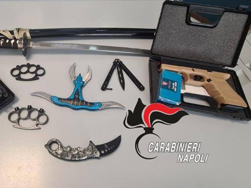 Hanno bussato alla porta della sua abitazione e trovato un coltello a serramanico, uno a farfalla e uno multilama. Poi due pistole giocattolo e una katana. Il supporto delle telecamere è stato determinante anche per recuperare due tirapugni. Il giovane li aveva nascosti in villa comunale a Casoria, ai piedi di un albero.