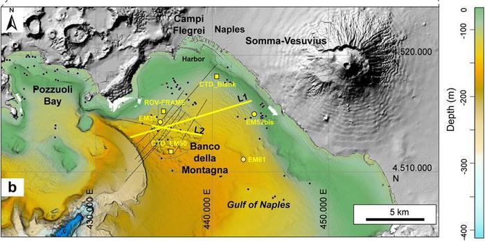 Il duomo sottomarino si trova a metà strada tra i vulcani attivi dei Campi Flegrei e del Vesuvio
