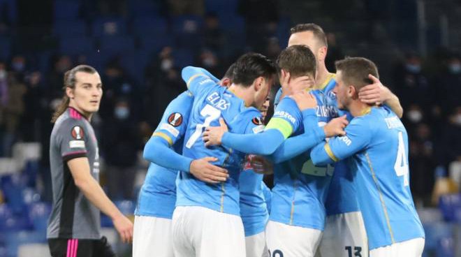 Napoli soddisfatto a metà. Batte con più di un affanno il Leicester (3-2), grazie alle reti di Elmas, doppietta per lui, e Ounas, e agguanta il passaggio del turno, ma la vittoria dello Spartak Mosca a Varsavia relega gli azzurri al secondo posto del girone e li costringerà a sfidare nei play off di fine febbraio un’avversaria tra le otto – tutte temibilissime – classificatesi terze nei gironi di Champions.
