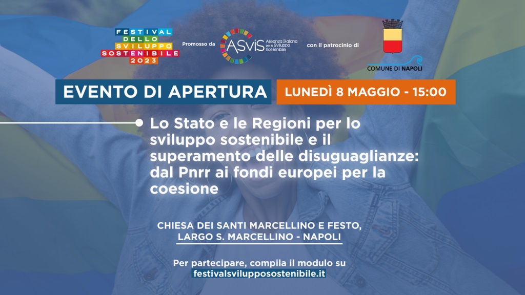 Lunedì 8 maggio alle 15:00, si terrà a Napoli l’evento di apertura del Festival dello Sviluppo Sostenibile dal titolo ‘Lo Stato e le Regioni per lo sviluppo sostenibile e il superamento delle disuguaglianze: dal Pnrr ai fondi europei per la coesione’.