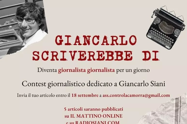 Tra gli articoli pervenuti, ne verranno scelti cinque che saranno pubblicati su Il Mattino online e su RadioSiani.com il 23 settembre, anniversario della scomparsa del giornalista napoletano. “Giancarlo non c’è più, questo lo sappiamo bene – scrivono in una nota i promotori del contest – ma il suo ricordo continua a vivere e ad essere fonte di impegno e cambiamento.