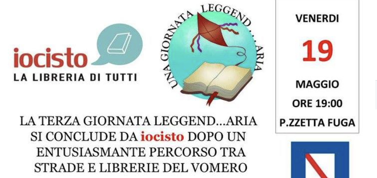 “Una giornata leggend…aria – Libri e lettori per le strade del Vomero” è un progetto di diffusione del libro e della lettura, che quest’oggi farà tappa presso la libreria Iocisto, ore 19 – Piazzetta Fuga. Parteciperanno: Michele Caputo, Benedetto Casillo, Emanuele Cerullo, Maurizio De Angelis, Angela Di Maso, Ivan Fedele, Giorgia Giantiempo, Alessandro Incerto, Peppe Lanzetta, Maurizio Merolla, Lorenzo Sarcinelli, Sergio Savastano, Gennaro Silvestro, Antonella Stefanucci, Nando Varriale. Intervento musicale a cura del gruppo Napulitana. Presenta Federica Flocco. Coordinamento Bernardina Moriconi.