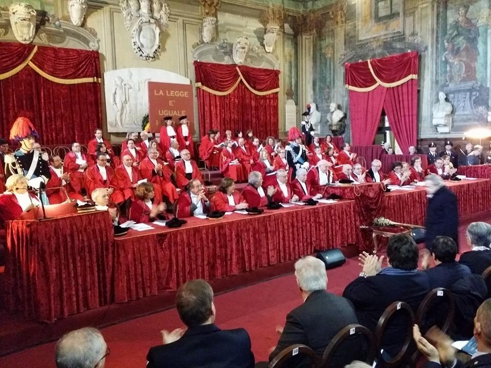 Nel Salone dei Busti, il Presidente della Corte d’Appello di Napoli, Antonio Buonajuto – nella sua relazione – attacca ferocemente il fenomeno camorristico, colpevole di insinuarsi in attività lecite, per riciclare milioni di euro; riflessione giammai slegata dall’attenzione al contesto giudiziario, che soffre pesantemente di peccati gravi che non consentono alla legalità di apparire “conveniente” al cittadino: in pratica, la legalità patisce la concorrenza sleale della criminalità organizzata, oggi tesa a raggiungere i propri scopi affaristici grazie a collusioni importanti con parte della società civile, delle istituzioni, dell’impresa, della politica.