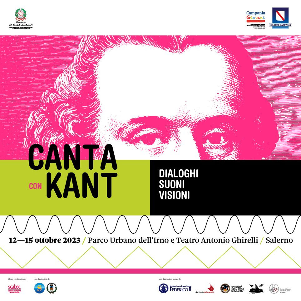 Programmato e finanziato dalla Regione Campania (fondi Regione Campania e Dipartimento per le politiche giovanili e il servizio civile universale) attraverso la Scabec, società campana per la promozione e la valorizzazione dei beni culturali, “Canta con Kant. Dialoghi, suoni, visioni” è il festival in programma dal 12 al 15 ottobre a Salerno. Concerti, dibattiti filosofici, riflessioni, contrappunti attoriali e interazioni con il pubblico animeranno la città all’interno del suo polmone verde.