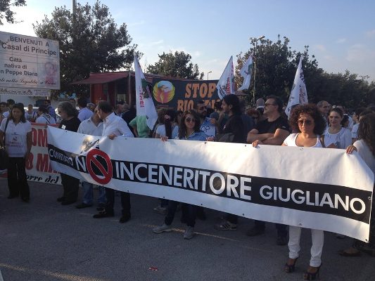 Giugliano – Ancora un “No” all’inceneritore di Giugliano. Ancora un “No” gridato dai cittadini della Campania, decisi a farsi ascoltare e a far rispettare i propri diritti. Ancora un corteo di protesta si sta preparando ad invadere pacificamente i territori dell’area Nord di Napoli. La marcia per dire “No all’inceneritore di Giugliano” sarà lunga e attraverserà molte strade dell’hinterland campano, da Aversa a Giugliano: l’appuntamento è per le 15.30 alla stazione di Aversa; il corteo percorrerà via Appia fino alle colonne di Giugliano, dove si uniranno alla folla anche i cittadini di Sant’Antimo e Melito, continuerà per via Colonne e corso Campano per poi raggiungere piazza Annunziata a Giugliano. Molti i gruppi che animeranno il corteo, aggregandosi con l’avanzare della manifestazione nel territorio di Giugliano.