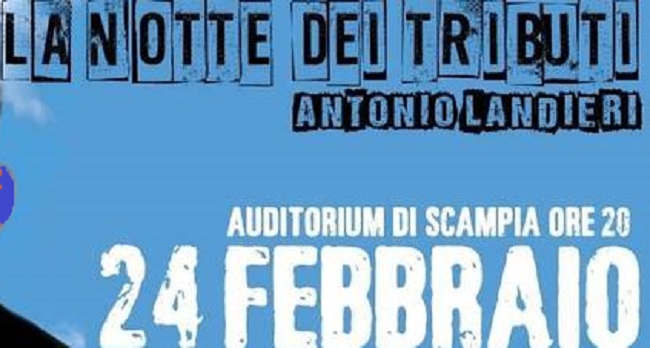 La Notte dei Tributi Antonio Landieri, che si terrà mercoledì 24 febbraio 2016, dalle ore 20:30 negli spazi dell’Auditorium di Scampia, nasce con lo spirito e la voglia di restituire dignità a chi si è visto strappare un proprio caro in modo violento e improvviso da quella che è purtroppo la piovra del nostro Paese, la criminalità organizzata. Antonio è purtroppo una delle tante vittime innocenti della camorra, ucciso il 6 novembre del 2004 perché scambiato per uno spacciatore; a lui è intitolato lo sportello anti-camorra all’interno della sede dell’VIII Municipalità di Napoli, fortemente voluto dal Presidente Angelo Pisani.