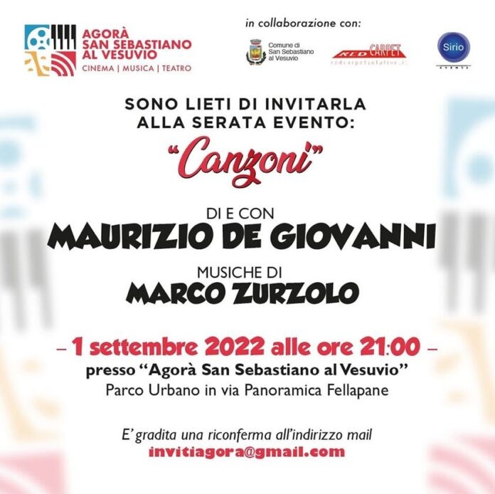 Con queste parole, direttamente dal suo profilo Facebook, Maurizio de Giovanni annuncia il suo ritorno sul palco, dopo l’infarto che lo ha colpito ad agosto, nell’ambito dell’evento “Agorà San Sebastiano al Vesuvio”. Con lui, Marzo Zurzolo.