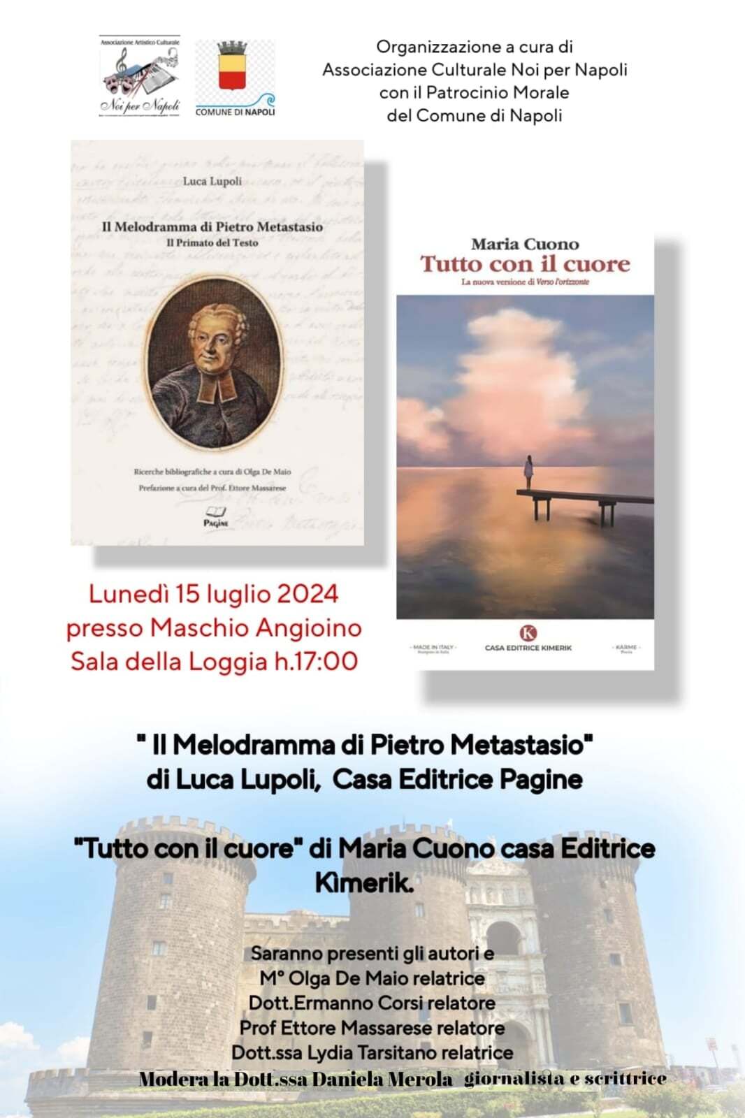 “Il melodramma di Pietro Metastasio, il primato del testo”, del tenore Luca Lupoli ed edito dalla casa editrice Pagine, sarà presentato in anteprima assoluta lunedì 15 giugno alle ore 17 presso il Maschio Angioino, sala della Loggia, Napoli