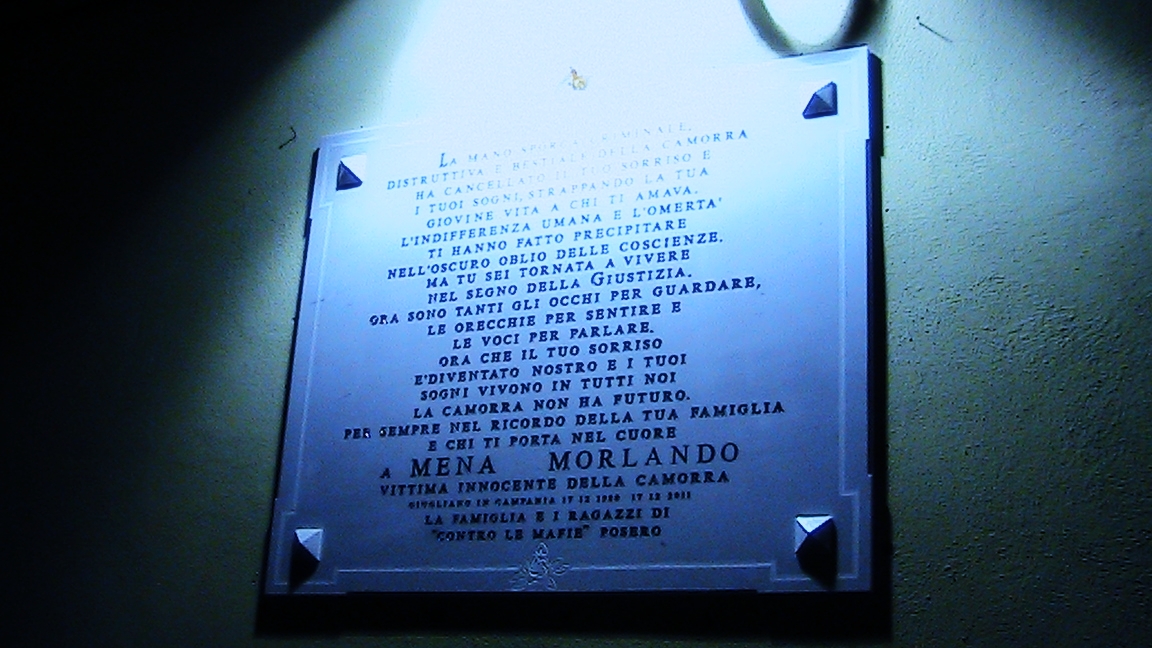 Tutti intervenuti alla cerimonia di messa in posa, della targa a memoria di Mena, in Via Monte Sion, a pochi passi dalla casa paterna di Mena. Ed è stato il magistrato Raffaele Cantone, che per primo ha parlato di Mena, a scoprire la lapide, ed a leggerne il contenuto.