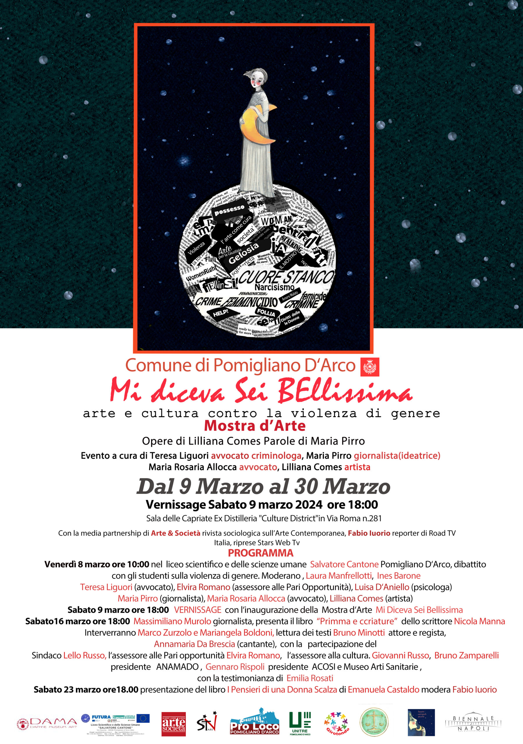 Partner del progetto: sportello anti-violenza Selene, cooperativa Girotondo Sociale, cooperativa Astraea sociale, Pro Loco Pomigliano d’Arco, UniTre Pomigliano, Futura La Scuola Per l’Italia Del Domani, Dama Danphnes Museum Editoria. Attività in collaborazione con la rivista Arte & Società e RoadTv Italia.