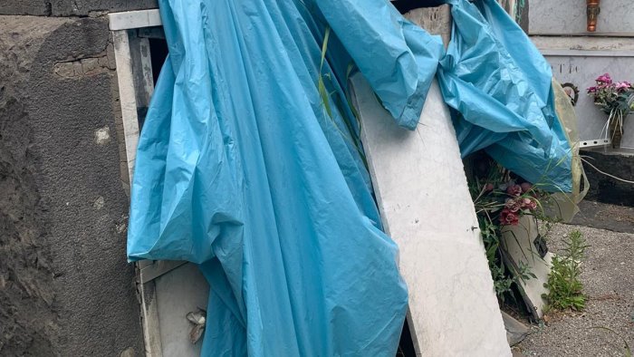 Al cimitero del Pianto, a Napoli, tra i loculi, davanti ad una tomba danneggiata, sono spuntate delle buste con uno o più cadaveri all’interno.