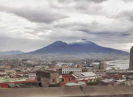 Il Vesuvio innevato e le temperature in picchiata sono gli effetti dell’annunciato colpo di coda dell’inverno nel Napoletano