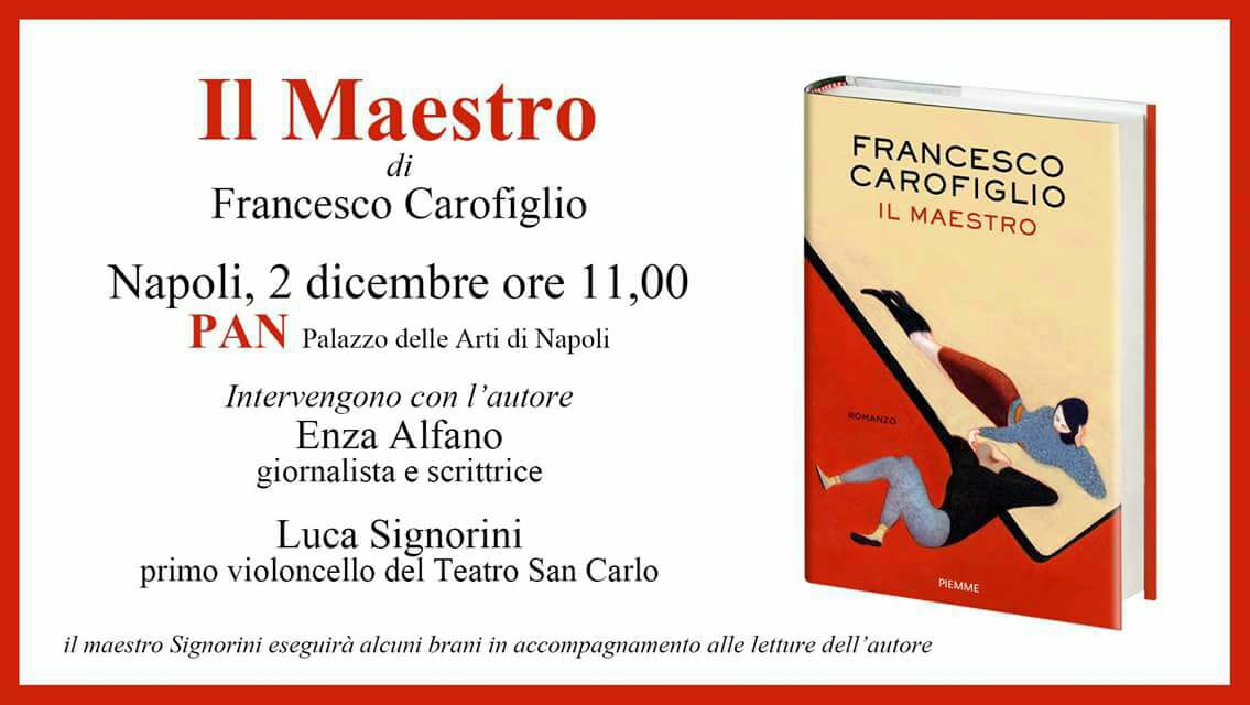 Lo scrittore di successo Francesco Carofiglio vi aspetta al PAN di Napoli alle ore 11, sabato 2 dicembre, per presentare Il Maestro. Con l’autore interverrà la scrittrice Enza Alfano.