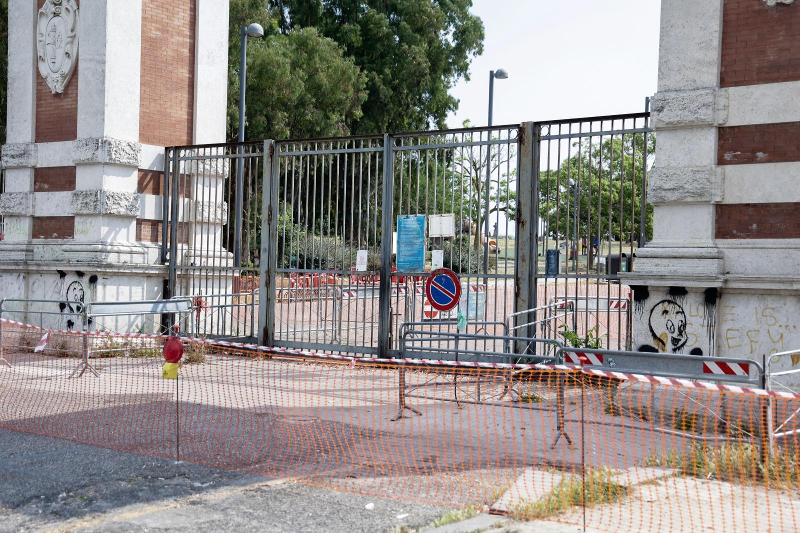 Il varco principale del Parco Virgiliano è stato chiuso a causa del rischio crollo delle grandi anfore che si trovano all’ingresso.