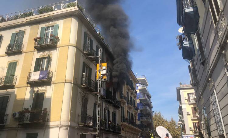 Momenti di grande tensione a Napoli nel quartiere collinare Vomero dove pochi minuti fa è scoppiato un incendio nella centralissima via Merliani. Le fiamme escono dalle finestre di un appartamento al secondo dei tre piani di un palazzo. Sul posto sono arrivati immediatamente ambulanza e vigili del fuoco che stanno spegnendo il fuoco dalla strada.