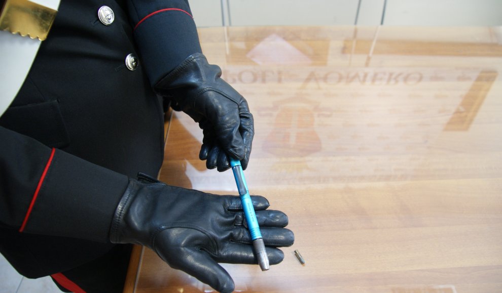 Tra gli abiti, riposti nell’armadio, i carabinieri hanno trovato una penna pistola, realizzata artigianalmente ma in grado di esplodere proiettili calibro 22.