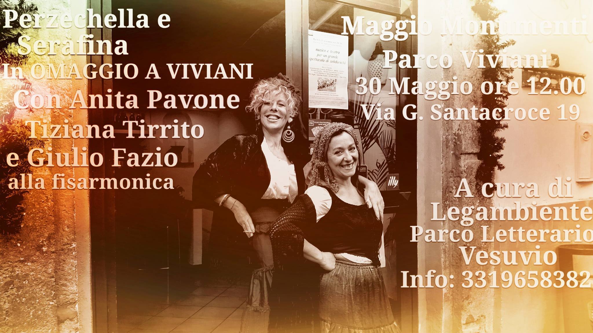 Lo spettacolo verrà riproposto nello stesso parco intitolato a lui sabato 30 maggio, alle 12 in via Girolamo Santacroce 19. Un’occasione per conoscere uno dei luoghi più suggestivi di Napoli, nella settimana dedicata al verde, attraverso visite guidate a cura dell’architetto Maria Anna Martignetti di Legambiente. Attraverso monologhi, aneddoti, dialoghi, canzoni e poesie le due autrici condurranno quindi lo spettatore in un vero e proprio viaggio nella vita dell’autore.