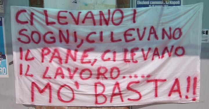 “Giovani Democratici si sono riuniti in Via Nuova Marina per un sit in di protesta al precariato nel mondo del lavoro, nell’ambito delle manifestazioni nazionali che vedono coinvolte oltre che Napoli, anche Roma, Milano e Torino”