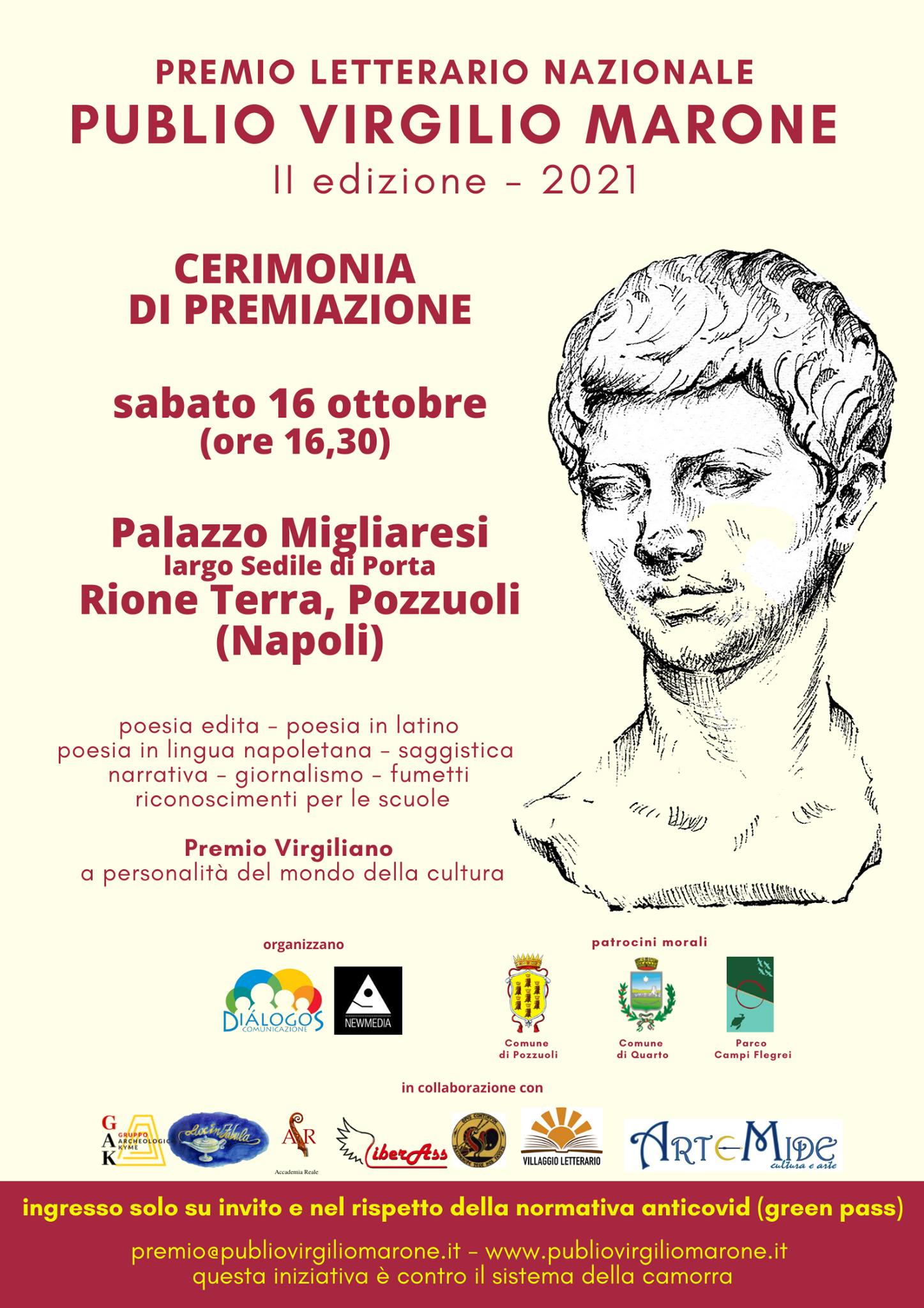 Si terrà sabato 16 ottobre la cerimonia di premiazione della II edizione del premio Letterario Nazionale “Publio Virgilio Marone”. L’evento si terrà a Palazzo Migliaresi alle ore 16.30.