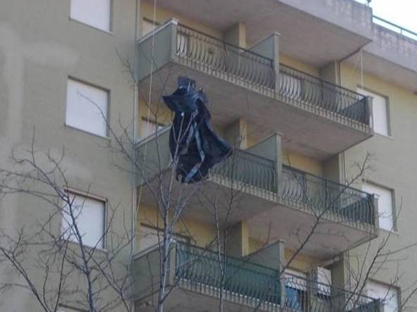 I video su internet, le immagini che arrivano nel nostro paese, non fanno altro che aumentare quello che altro non è se non terrorismo psicologico da parte dell’Isis. Ultimo esempio se n è avuto a Porto Recanati, nelle Marche, dove una giacca nera è finita, per un colpo di vento, da uno stendino sistemato su un balcone (come si vede nella foto di Emanuela Addario per Il Resto del Carlino), sui rami di un albero. E quel “drappo” nero, in lontananza, a qualcuno è sembrato la bandiera nera del Califfato, quella che si vede proprio nei proclami e nei terribili video dello Stato islamico.