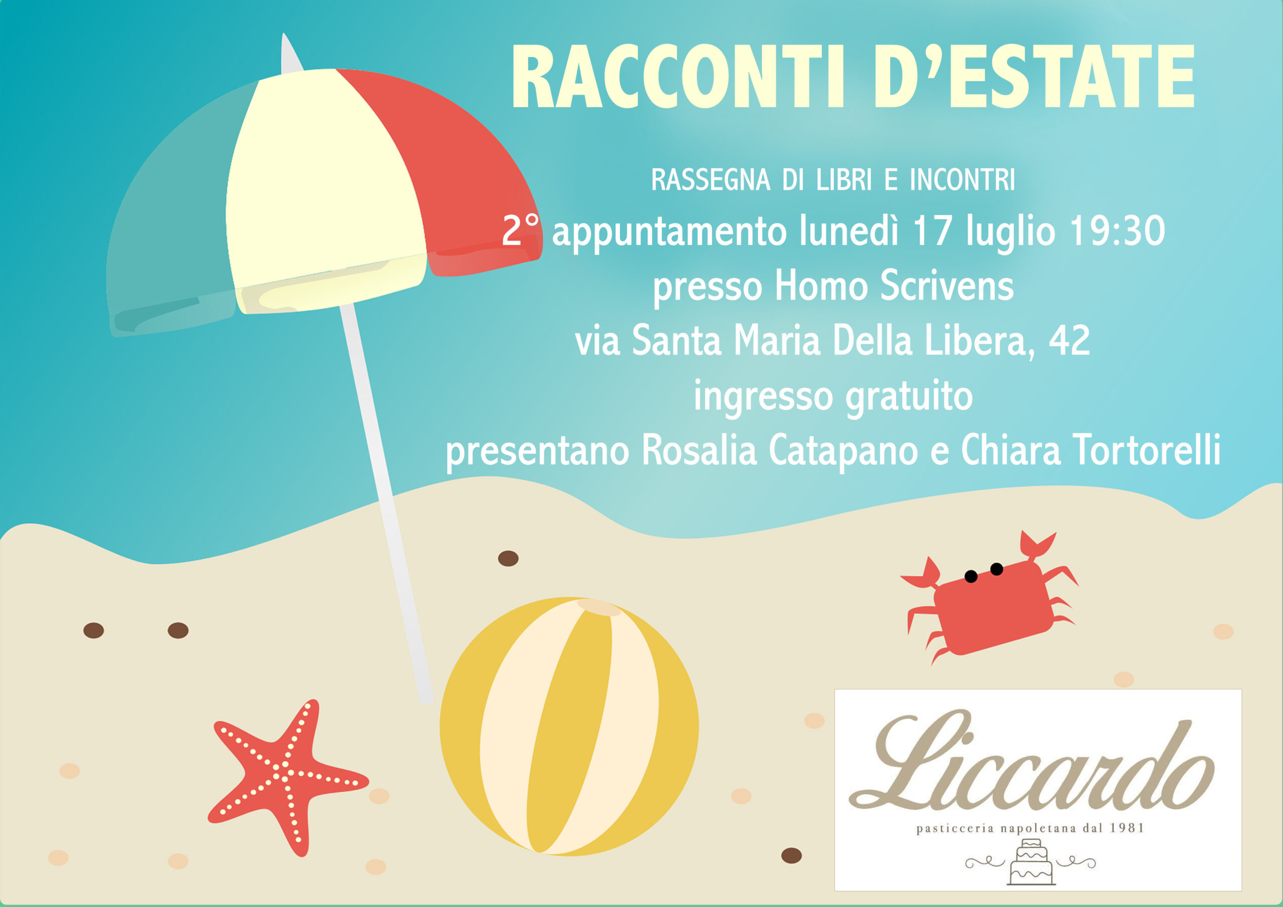 Racconti d’Estate torna lunedì 17 alle ore 19:30, nella sede di Homo Scrivens a via Santa Maria della Libera 42, invece che al Guapanapoli, come era inizialmente previsto, con un rinfresco che accompagnerà la serata di libri e incontri a cura di Homo Scrivens.