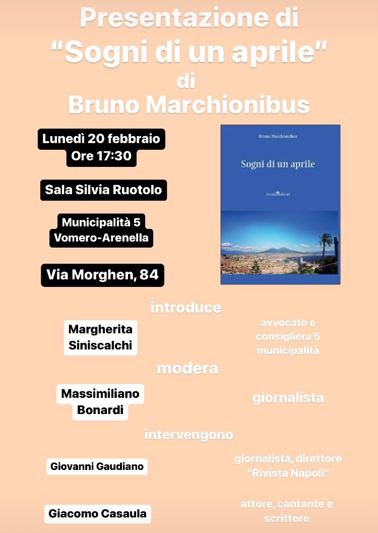 Bruno Marchionibus presenterà il suo primo romanzo “Sogni di un aprile” alla Municipalità 5 Vomero-Arenella