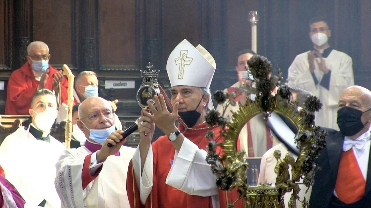 Il sangue di San Gennaro si è sciolto alle 10.01: l’annuncio ai fedeli dell’arcivescovo di Napoli, Domenico Battaglia.