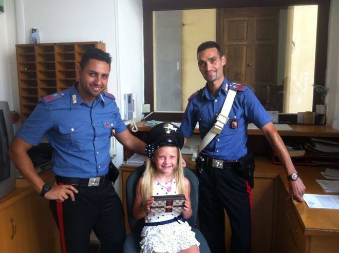 Appena scesa dall’aliscafo, Sofia ha notato un oggetto per terra: un portafogli, caduto dalla tasca di una turista straniera. La piccola è andata immediatamente a raccoglierlo e poi dritta dal papà, dicendogli: “Portami dai carabinieri”. La famiglia si è così avviata verso la caserma Pastrengo, dove la piccola Sofia ha consegnato il portafogli ai carabinieri. “Il proprietario sarà preoccupato, dobbiamo restituirglielo” ha spiegato la bimba alla famiglia e ai carabinieri, facendosi poi immortalare insieme a loro, il cappello di ordinanza sulla sua testolina bionda, in una foto ricordo, che per tutti è diventata simbolo di una Napoli diversa, rispettosa, legale.