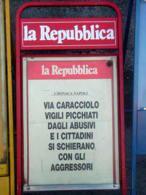 Sia chiaro, non voglio dire che i parcheggiatori abusivi siano il problema principale della nostra città. Con tutto quello che succede qui (omicidi, rapine, scippi, discariche abusive e inquinamento ambientale, traffico di droga, corruzione, concussione, contraffazione, etc etc) è sicuramente il minore dei problemi (per quanto anche quello sia un settore notoriamente in mano alla Camorra).