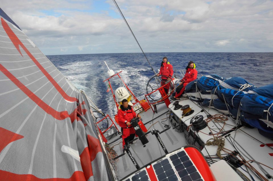 Al momento Maserati sta navigando nell’emisfero sud di bolina con 7, 8 nodi di vento, a una decina di nodi di velocità.