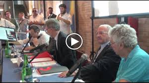 Durante la conferenza stampa di presentazione del progetto della futura Città della scienza, un addetto alla sala posiziona uno schermo davanti a Vincenzo De Luca. Sul monitor saranno proiettate le immagini del progetto vincitore. Però lo schermo copre una giovane consigliera della municipalità di Fuorigrotta, e allora il governatore della Regione chiede scherzosamente all’addetto di allontanare lo schermo che ha coperto la giovane consigliera.