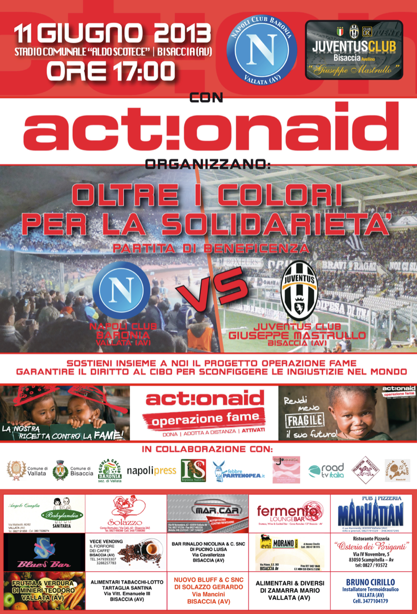 Un evento organizzato da Ottavio Cornacchia e patrocinato da Action Aid, al quale è andato il ricavato della serata. Peccato solo per il clima, che ha offerto una fitta pioggia per tutto il pomeriggio, e che ha fatto slittare l’incontro di due ore. Anche per questo motivo la presenza sugli spalti non è stata foltissima.