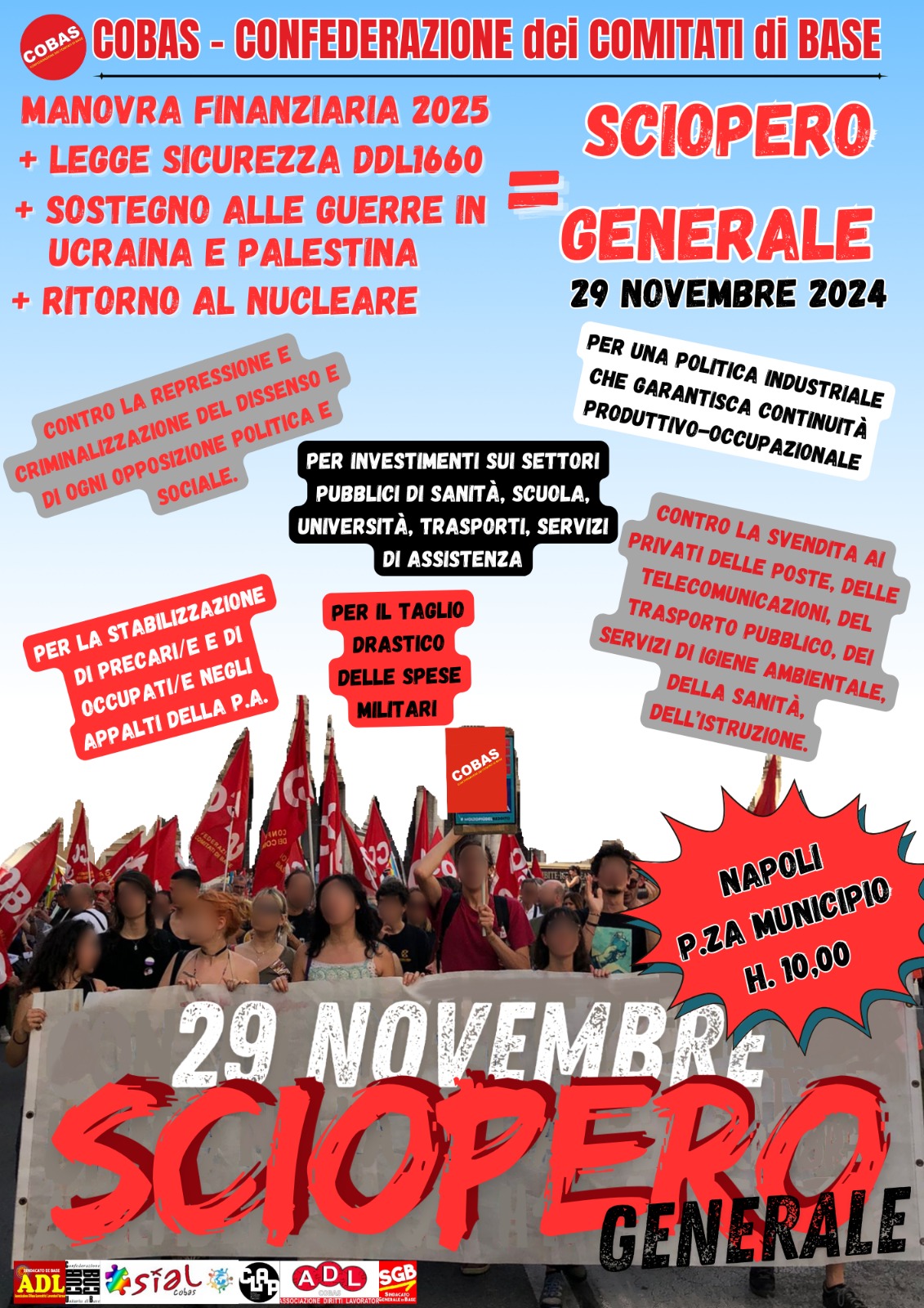 29 NOVEMBRE SCIOPERO GENERALE! CONCENTRAMENTO A NAPOLI IN PIAZZA MUNICIPIO ALLE 10.
