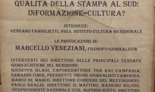 Venerdì 24 gennaio 2020 alle ore 17, presso l’Istituto di Cultura Meridionale Palazzo Arlotta, Napoli, via Chiatamone 63, si terrà il Confronto-dibattito celebrativo del manifesto del ‘97 “Qualita’ della Stampa al Sud: Informazione=Cultura?”.