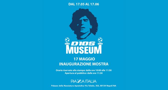 Napoli si prepara a riabbracciare il suo mito eterno, Diego Armando Maradona, grazie al “D10s museum”, iniziativa organizzata e promossa da Piazza Italia: sabato 17 maggio nel prestigioso Palazzo della Nunziatura Apostolica nel cuore di Napoli (via Toledo 352) sarà infatti inaugurato il Museo Temporaneo dedicato al più grande calciatore di tutti i tempi.