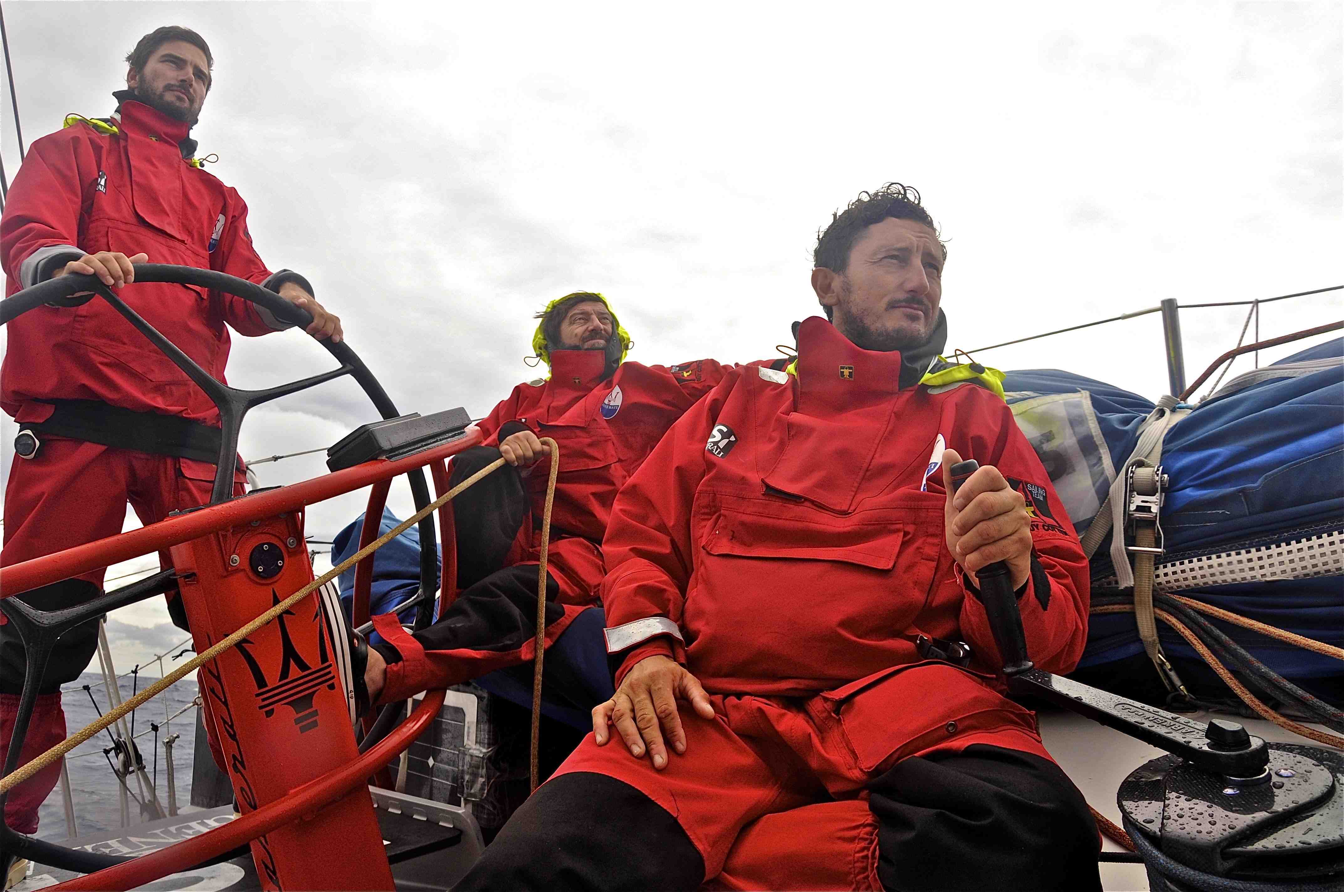 16 gennaio 14:00 – Un’ampia zona di calma ha intrappolato Maserati che deve combattere per conquistare ogni miglio.Tempo di navigazione 15 giorni, 22 ore e 33 minuti – Sino ad ora è andata molto bene, partiti da New York con vento forte, Maserati aveva traversato zone di vento debole, era riuscita anche a passare l’equatore senza rallentare troppo, ma ora all’altezza di Rio de Janeiro, una zona di calme con forti temporali e repentini colpi di vento, ha bruscamente rallentato la corsa di Giovanni Soldini e i suoi compagni.