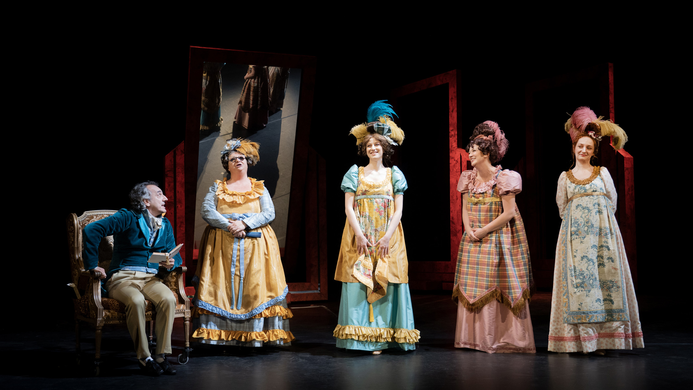 Per fare questo si cala nei suoi personaggi/alter ego amandoli e prendendoli un po’ in giro, magari standosene nascosta dietro una tenda ad osservarli, ridacchiando tra sé. Da dietro quella tenda, come nel buio di una quinta, celata agli sguardi altrui ma attenta a non farsi sfuggire nulla di ciò che accade, Jane Austen reinventa la realtà attraverso la sua rappresentazione, ma mai smettendo di essere vera. Come avviene in teatro». Arturo Cirillo