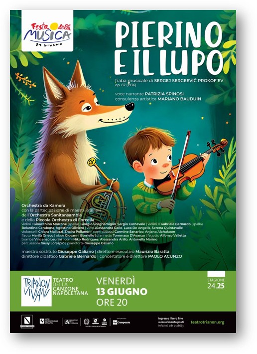 Con la voce narrante di Patrizia Spinosi e la direzione di Paolo Acunzo, il teatro pubblico di Forcella partecipa alla kermesse internazionale con la fiaba sinfonica di Sergej Prokof’ev, scritta per l’infanzia, venerdì 13 giugno, alle 20.