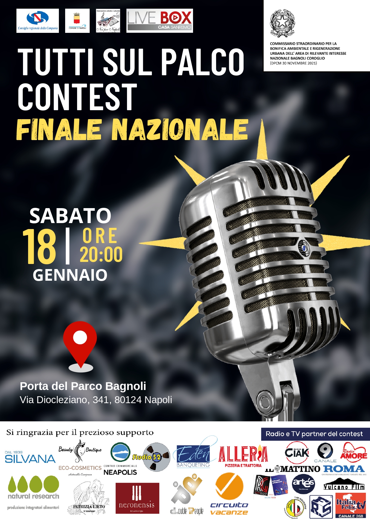 Un ringraziamento speciale va al Consorzio Gruppo Eventi, nella persona del Presidente Vincenzo Russolillo, per il sostegno e l’opportunità concessa a tanti talenti giovani e non di mettersi in luce ed ai seguenti main sponsor :