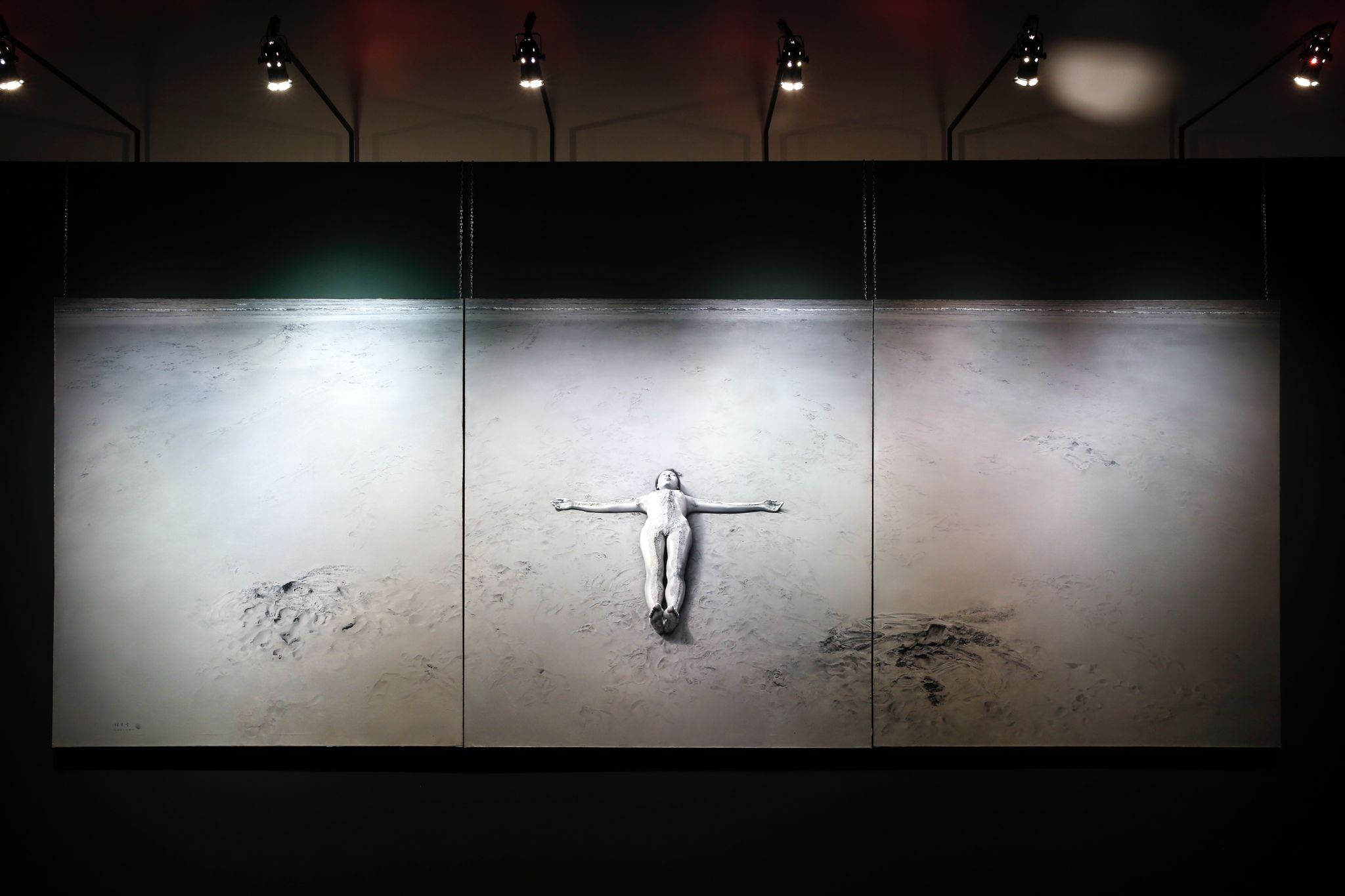 Peng Feng ha dichiarato che “Presenza ed assenza sono due concetti fondamentali della filosofia cinese. Presenza ed assenza sono differenti, ma non completamente opposte, poiché si possono trasformare l’una nell’altra. La presenza può diventare assenza, e l’assenza può diventare presenza.” Si tratta di un percorso in cui è stato possibile ammirare due grandi tele dell’Artista Xu Qingfeng, che è presidente della Shandong University of Arts e vice decano dell’Istituto di Pittura a Olio dell’Accademia Cinese delle Arti. È inoltre direttore esecutivo della China Artists Association. In queste due opere viene riassunto il concetto di “presenza” ed “assenza”. In un dipinto infatti si è potuto assistere ad una figura umana distesa sulla spiaggia, mentre nell’altra si è potuto ammirare solo l’impronta che ha lasciato, dimostrando come presenza e assenza divengano una cosa sola.