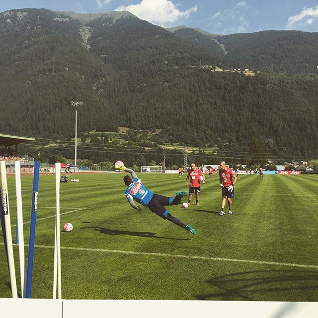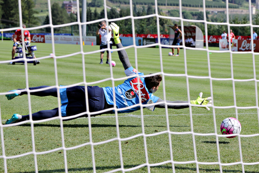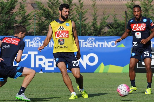 Allenamento del Napoli, nono giorno. Inizia la seduta pomeridiana in Val di Sole. Ancora assente Strinic, alle prese con insidie di natura muscolare. Marek Hamsik e David Lopez cominciano i giri di campo mentre il resto della squadra dà avvio al riscaldamento con la palla. I portieri effettuano l’allenamento differenziato con i bersagli gonfiabili per gli avversari che prediligono il gioco aereo.