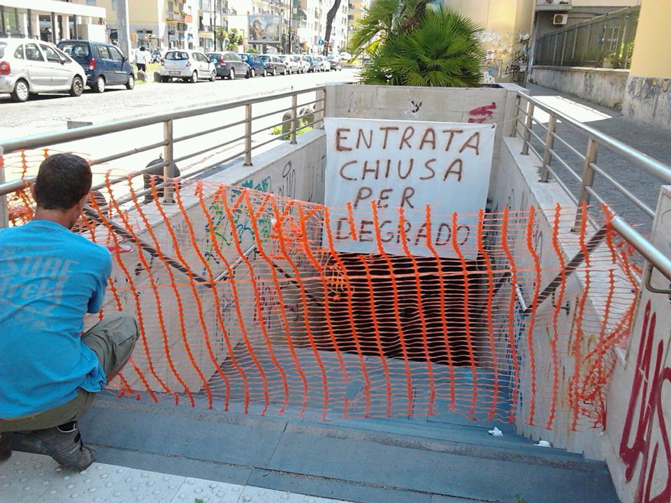 Il fatto è avvenuto venerdì 19 giugno, quando, circa verso le 20.30, quindi ancora con la luce del sole, due persone che si erano appartate all’ingresso del sottopassaggio della metropolitana, ormai chiusa da anni, sono stati visti fare sesso. Lì davanti agli occhi di tutti. “Adesso basta. Non possiamo accettare anche questo. Non possiamo accettare anche la prostituzione all’ordine del giorno. Quelli che amano Fuorigrotta denunciano lo stato di abbandono del viale Cesare Augusto. Una discarica a cielo aperto. Adesso abbiamo bisogno di partecipazione. Noi i fatti li facciamo. Chi vuole collaborare si faccia avanti”. E’ ciò che affermano Rosario Coglitore e Luigi Rubino, che sono gli artefici della chiusura del sottopassaggio. Chiusura che, come si vede dalle foto pubblicate sullo stesso gruppo facebook, viene spiegata anche da uno striscione che non lascia adito a equivoci o dubbi. “Entrata chiusa per degrado”.