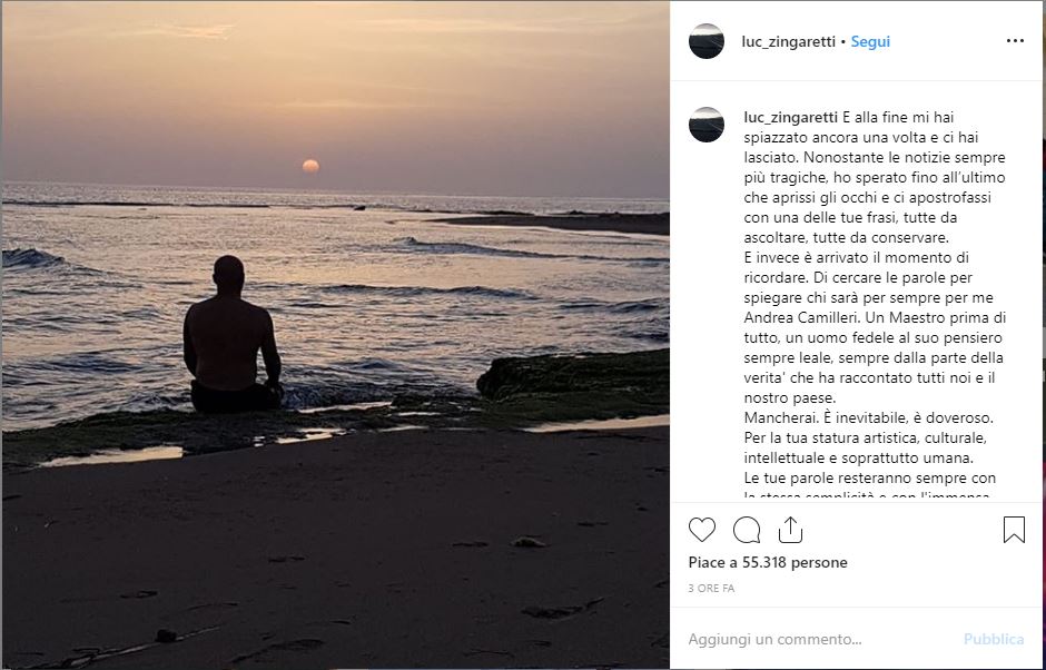 La morte di Camilleri ha sicuramente toccato le corde di tutti, e tante sono le parole di cordoglio di personaggi della cultura e della televisione. Tra tutti Luca Zingaretti che ha voluto salutare lo scrittore con un messaggio su Instagram.